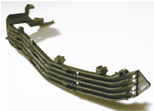 - Dlatego rozwiązania z wieloma przewężkami lub przewężki krawędziowe są zazwyczaj stosowane w przypadku długich części wypełnionych włóknami. (Rys. 3).